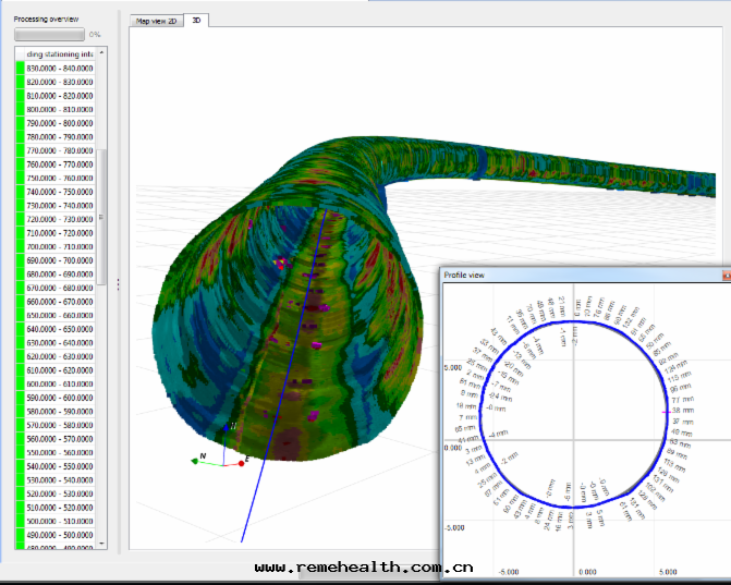 三(sān)維激光(guāng)掃描儀可(kě)以(yǐ)代(dài)替常規的(de)測量手(shǒu)段(duàn),完成(chéng)基礎信(xìn)息搜集,並(bìng)可(kě)以(yǐ)对(duì)施工中(zhōng)或(huò)完工隧道(dào)進(jìn)行掃描,得到(dào)高(gāo)精度(dù)的(de)點(diǎn)雲(yún)模型。在(zài)點(diǎn)雲(yún)模型上(shàng)可(kě)以(yǐ)直(zhí)接抽取斷面(miàn)數據(jù)来(lái)对(duì)隧道(dào)工程的(de)質(zhì)量、狀态進(jìn)行評價、验(yàn)收(shōu)。各(gè)種(zhǒng)成(chéng)果(guǒ),包(bāo)括三(sān)維模型左(zuǒ)上(shàng)图(tú),縱斷面(miàn)图(tú),超欠(qiàn)挖平衡,以(yǐ)及(jí)正(zhèng)射影像展(zhǎn)開(kāi)图(tú)。