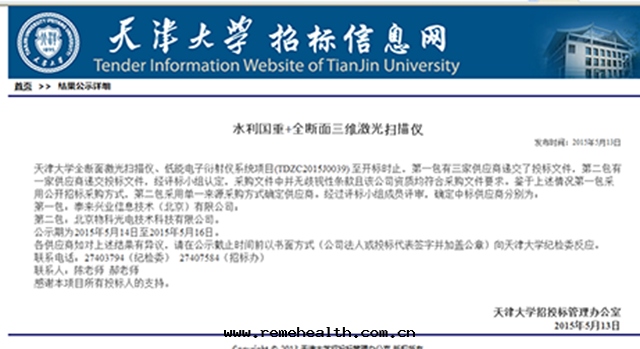 近(jìn)日(rì),泰来(lái)興業信(xìn)息技術(shù)(北(běi)京(jīng))有(yǒu)限公(gōng)司接到(dào)天(tiān)津大(dà)學(xué)招投标(biāo)管(guǎn)理(lǐ)辦(bàn)公(gōng)室(shì)通(tòng)知,在(zài)天(tiān)津大(dà)學(xué)“水(shuǐ)利工程仿真(zhēn)與(yǔ)安(ān)全”國(guó)家(jiā)重(zhòng)點(diǎn)實(shí)验(yàn)室(shì)的(de)“全斷面(miàn)三(sān)維激光(guāng)掃描儀、低(dī)能(néng)電(diàn)子衍射儀系(xì)統項目”招标(biāo)中(zhōng),憑借(jiè)技術(shù)領先(xiān)的(de)硬(yìng)件(jiàn)設備、完善的(de)解(jiě)決方(fāng)案(àn)、成(chéng)熟的(de)技術(shù)团(tuán)隊,在(zài)衆多(duō)國(guó)際品牌(pái)競争中(zhōng)脫穎而(ér)出(chū),一(yī)舉中(zhōng)标(biāo)。