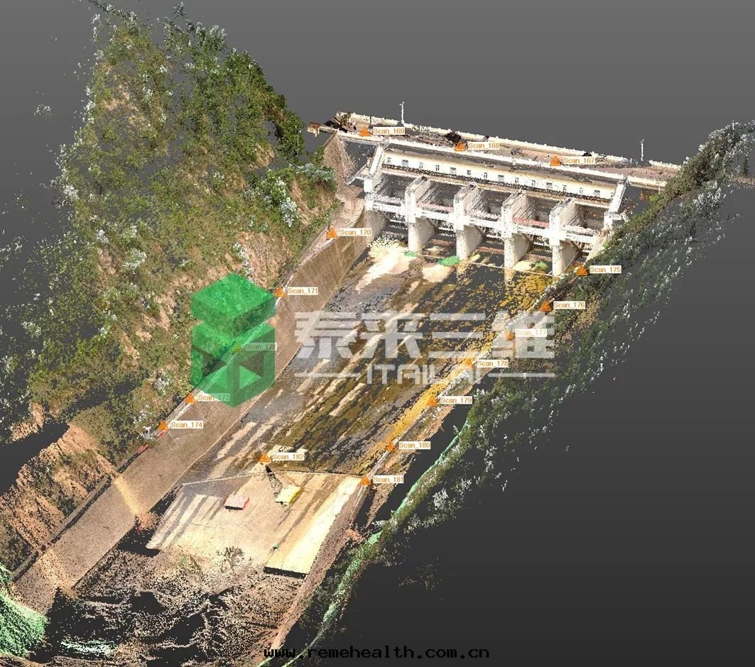 某一(yī)工程隊对(duì)某水(shuǐ)库溢洪道(dào)需進(jìn)行測量及(jí)制图(tú),由于(yú)溢洪道(dào)两(liǎng)側山(shān)體(tǐ)过(guò)于(yú)陡峭,为(wèi)測量人(rén)員带来(lái)很大(dà)難度(dù),于(yú)是(shì)利用(yòng)三(sān)維激光(guāng)掃描儀来(lái)对(duì)山(shān)體(tǐ)進(jìn)行測量采集。