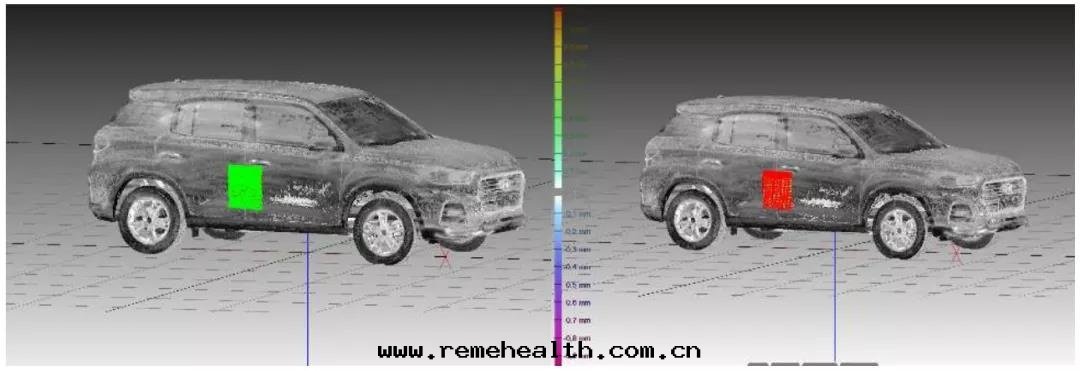 測試前(qián),需要(yào)在(zài)正(zhèng)投影掃描試验(yàn)室(shì)对(duì)待測車輛進(jìn)行整車3D數模掃描,獲取待測車輛的(de)3D模型point cloud數據(jù),掃描結果(guǒ)文(wén)件(jiàn)以(yǐ).cnk文(wén)件(jiàn)輸出(chū),然後(hòu)需要(yào)对(duì)所(suǒ)關(guān)心(xīn)的(de)車門(mén)系(xì)統測試區(qū)域位(wèi)置進(jìn)行噴粉處(chù)理(lǐ),噴粉的(de)目的(de)是(shì)为(wèi)了(le)在(zài)測試过(guò)程中(zhōng)提(tí)升(shēng)掃描儀的(de)掃描精度(dù)和(hé)掃描質(zhì)量,更(gèng)精确的(de)掃描到(dào)变形量結果(guǒ)。