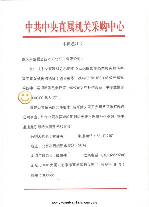 近(jìn)日(rì),泰来(lái)公(gōng)司收(shōu)到(dào)中(zhōng)共中(zhōng)央直(zhí)屬機(jī)關(guān)采購中(zhōng)心(xīn)的(de)中(zhōng)标(biāo)通(tòng)知書(shū),在(zài)中(zhōng)華人(rén)民(mín)共和(hé)國(guó)國(guó)家(jiā)档案(àn)局(jú)實(shí)物(wù)档案(àn)數字(zì)化(huà)設備采購項目中(zhōng),泰来(lái)興業信(xìn)息技術(shù)(北(běi)京(jīng))有(yǒu)限公(gōng)司,憑借(jiè)先(xiān)進(jìn)、完善的(de)整體(tǐ)解(jiě)決方(fāng)案(àn),在(zài)衆多(duō)國(guó)際品牌(pái)公(gōng)開(kāi)競争中(zhōng),赢得評委專家(jiā)及(jí)用(yòng)戶的(de)一(yī)致(zhì)認可(kě),最(zuì)終(zhōng)中(zhōng)标(biāo)。泰来(lái)公(gōng)司将为(wèi)國(guó)家(jiā)档案(àn)局(jú)提(tí)供成(chéng)熟、完善的(de)售後(hòu)服(fú)务及(jí)技術(shù)支持(chí)工作(zuò)。