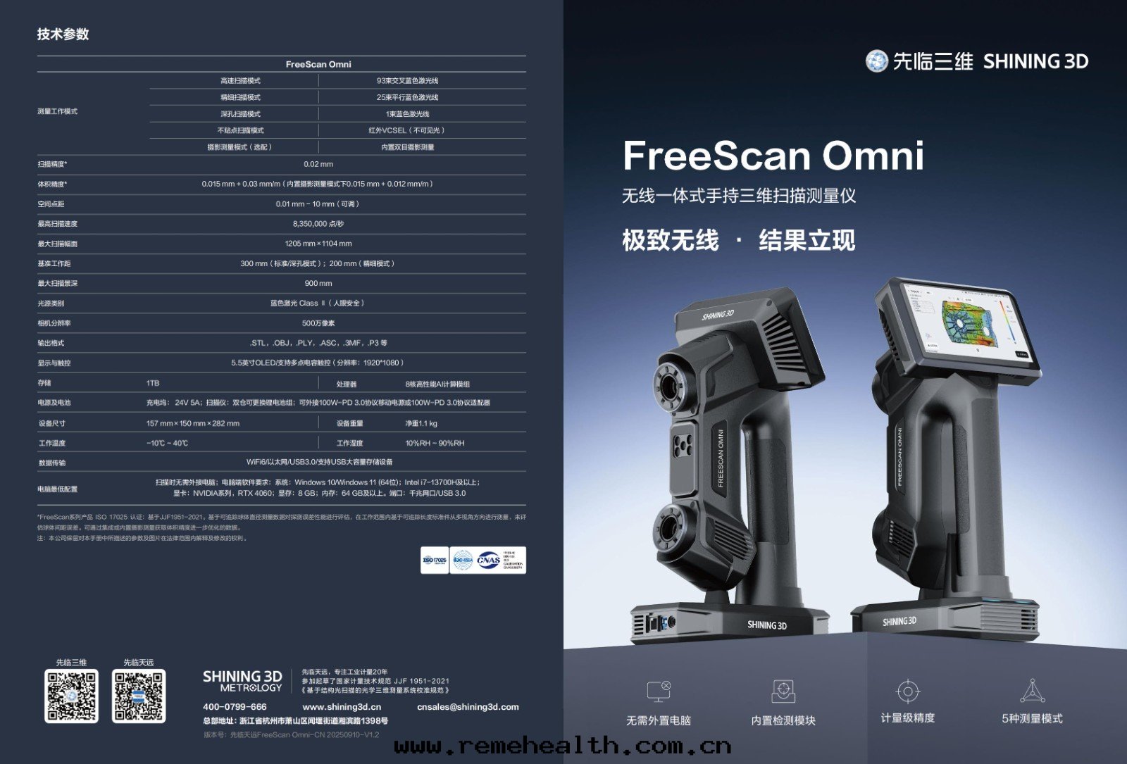 | 産品型号(hào) | FreeScan Omni 無線(xiàn)一(yī)體(tǐ)式手(shǒu)持(chí)三(sān)維掃描測量儀 | |